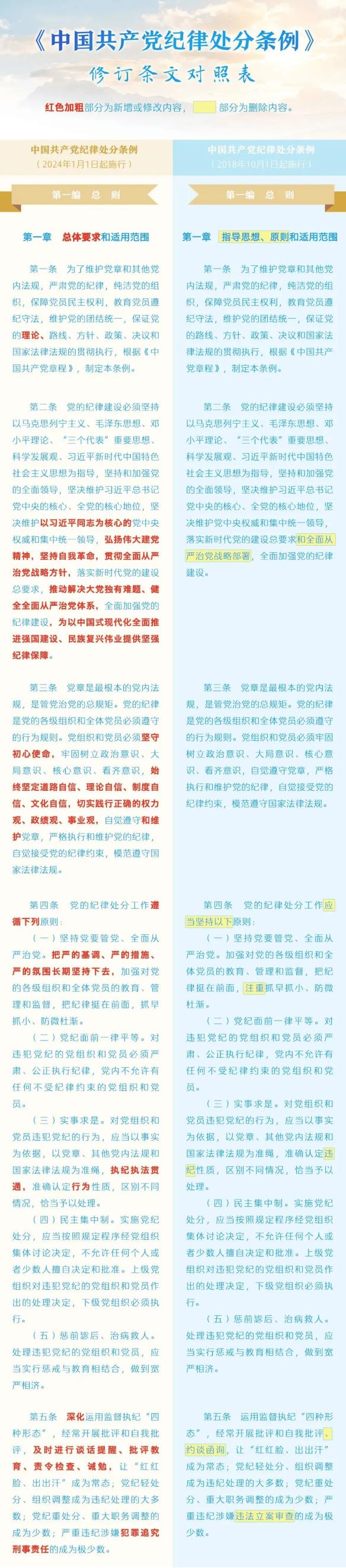 党纪学习教育资料(1)——《中国共产党纪律处分条例》修订条文对照表
